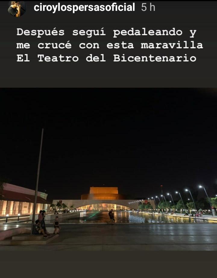 En el recorrido, el artista se "topó" con el Teatro del Bicentenario y tras un "lance" logró entrar y verlo en detalle.