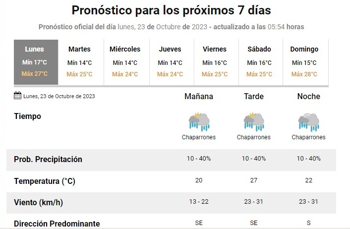 De acuerdo al pronóstico del Servicio Meteorológico Nacional, será un lunes gris con probabilidad de chaparrones aislados, pero con una temperatura máxima que rondará los 27º.