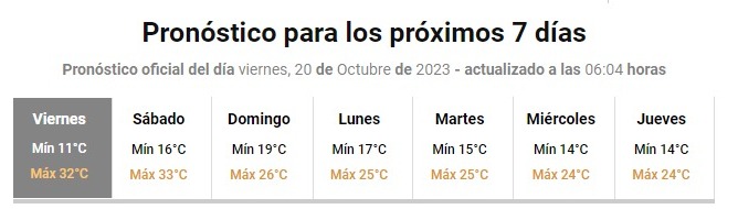 El Servicio Meteorológico Nacional anuncio para este viernes una jornada calurosa y cielo despejado. La situación se mantendrá hasta la tarde de mañana, después se espera viento, lluvia y descenso de la temperatura.