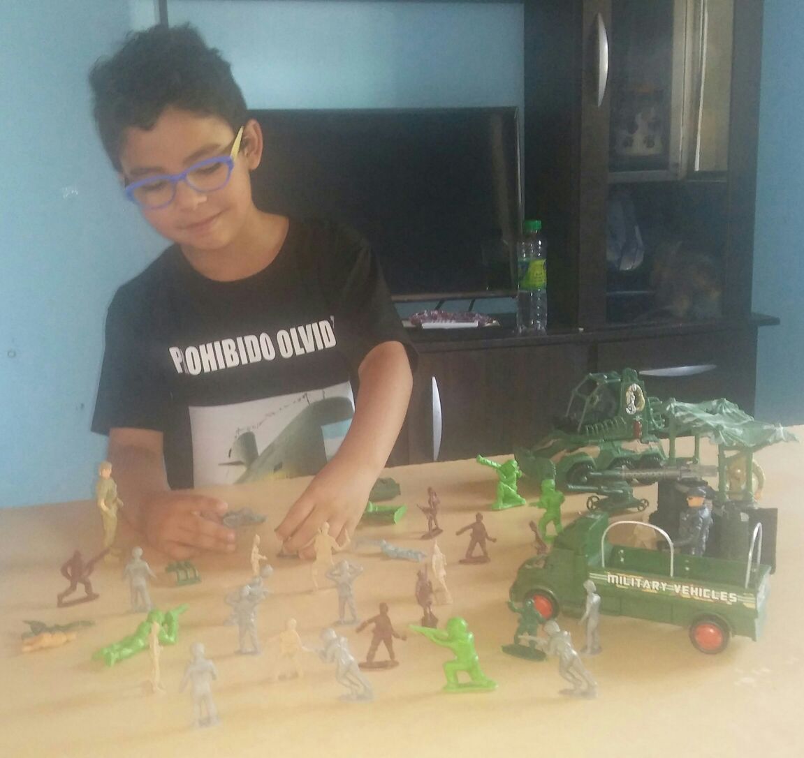 Desde hace años, a pesar de su corta edad, el niño sólo quiere soldaditos cada vez que tiene oportunidad de pedir un regalo, los guarda agrupados por colores y juega con ellos cada vez que puede.