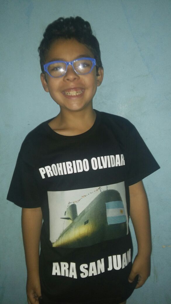 Por eso, la dura búsqueda del submarino lo impactó tanto. “Sigue con nosotros todas las noticias y pregunta todo lo que puede. Yo le mostré imágenes del submarino, él vio una y me dijo ‘mamá quiero una remera con esa foto’. Por eso ideamos qué le íbamos a escribir y se la hice hacer”, comentó Yanela.