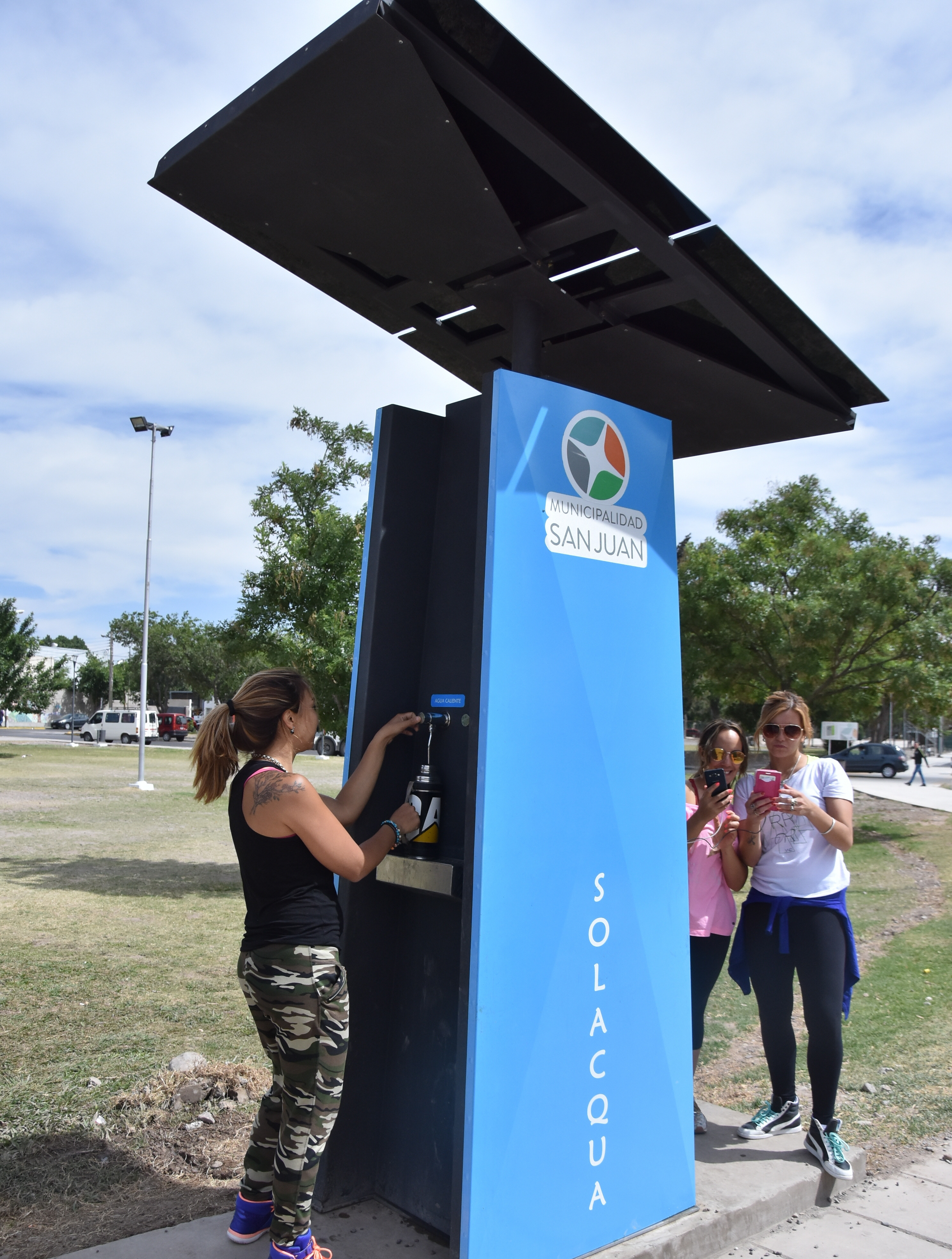 Noguera comentó que la cabina fue colocada en el marco de plan de mejora de la plaza que está detrás de la Terminal de Ómnibus (ver aparte). A la vez dijo que esta Estación Solar Multipropósito (nombre técnico de la cabina), tiene un valor aproximado de $175.000. Tiene la capacidad de refrigeración y calentamiento de 10 litros de agua por hora y tiene entradas USB para poder cargar cuatro celulares o cualquier otro aparto electrónico y funciona gracias a 3 paneles solares que tiene en la parte superior. "Si bien funciona con energía solar, la cabina también está conectada a la red eléctrica externa para casos en los que se quede sin energía", dijo Noguera y comentó que buscarán colocar otras en distintos espacios verdes de la Capital, sobre todo en las plazas que son más usadas para hacer deportes. En este contexto dijo que aún no tienen un plan definido de cuántas cabinas colocarán y dónde las pondrán. "En el departamento tenemos muchos espacios verdes que no tienen ni un bebedero y eso es muy necesario. Hace falta que la gente que se ejercita en estas zonas se pueda hidratar", agregó el funcionario y comentó que otro de los factores que llevó a que la primera cabina se colocara en esa zona es la cercanía con la Terminal de Ómnibus. Es que hay muchas personas que deben hacer trasbordo en San Juan y cuando llegan de noche o en la siesta no tienen muchas opciones para comprar agua fría o caliente.