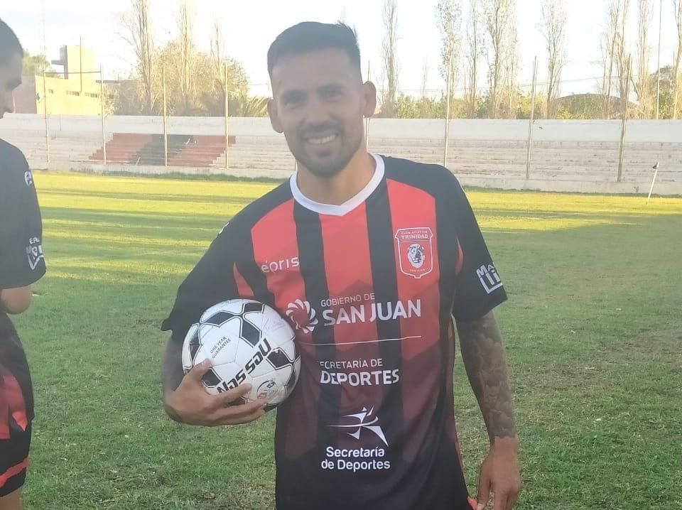 Se llevó la pelota. Marcos Figueroa convirtió los 3 goles con los que Trinidad venció a Juventud Unida