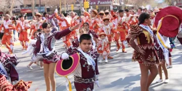 Pero eso no fue todo ya que también gran cantidad de público se acercó hasta el lugar para poder ver los llamativos atuendos multicolores y poder bailar con la música de los profesantes pertenecientes a la comunidad boliviana de la provincia.
