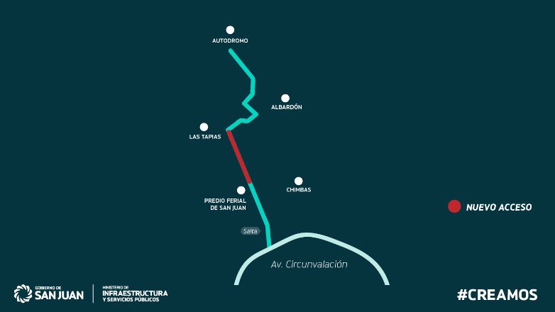 Esta vía permitirá una circulación más ágil hacia la localidad de Las Tapias en Albardón y se constituye en una alternativa hacia el nuevo Parque Turístico Deportivo Circuito Villicum mientras duren las obras en R.N. 40.