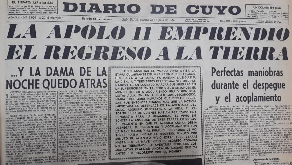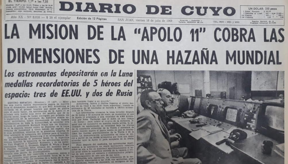 ¿Y cómo lo vivieron los sanjuaninos? Minutos después del alunizaje, cientos de personas se hicieron presentes en Plaza 25 de Mayo. "Este acontecimiento, que marca el hecho más trascendental del Siglo XX, fue motivo para que en forma imprevista se formara una gran caravana de automóviles, los que haciendo oir el sonido de sus bocinas recorrieron el perímetro de la Plaza y sus calles adyacentes, a la vez que las iglesias de la Capital y de las parroquias aledañas echaron sus campanas a vuelo", rezaba la crónica de esa jornada. "San Juan recibió con júbilo indescriptible la hazaña", se agregó.