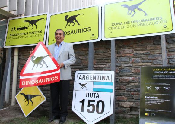 ‘No hay señaléctica de este tipo en el país. Son carteles con leyendas graciosas, si se quiere, que tienden a llamar la atención de los visitantes. Y fundamentalmente, con esto buscamos tematizar a la provincia con los dinosaurios, a potenciar uno de los atractivos turísticos pues en San Juan fueron hallados fósiles de los tres periodos mesozoicos’, explicó el ministro de Turismo, Dante Elizondo.