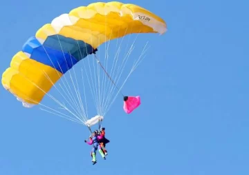 Al llegar a los tres mil metros, el instructor buscó el punto justo para la caída y comenzó el momento crítico. Con un pie en la rueda del avión y otro en un estribo. Aferrada por un arnés al paracaidista, esperaba el momento del descenso. No había vuelta atrás.
