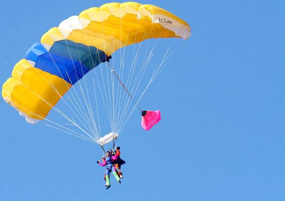 Caer al vacío desde tres mil metros de altura es diferente a lo que imaginaba. Sentía el ruido del aire que golpea fuerte. Pero a pesar de estar cayendo, parecía que mi cuerpo estaba en suspensión. Fue como si pudiera flotar en el aire, como si no existiera la gravedad. De golpe un fuerte tirón. El silencio absoluto invadió todo. Apareció la calma y pude disfrutar de un cantidad enorme de gamas de verdes y marrones que recubren la tierra. Pero, cuando logré hallar la calma, luego de la adrenalina, la tierra comenzó a acercarse, para recordarme que los seres humanos no podemos volar. Y que sólo podemos disfrutar de ese momento, suspendidos con un paracaídas.