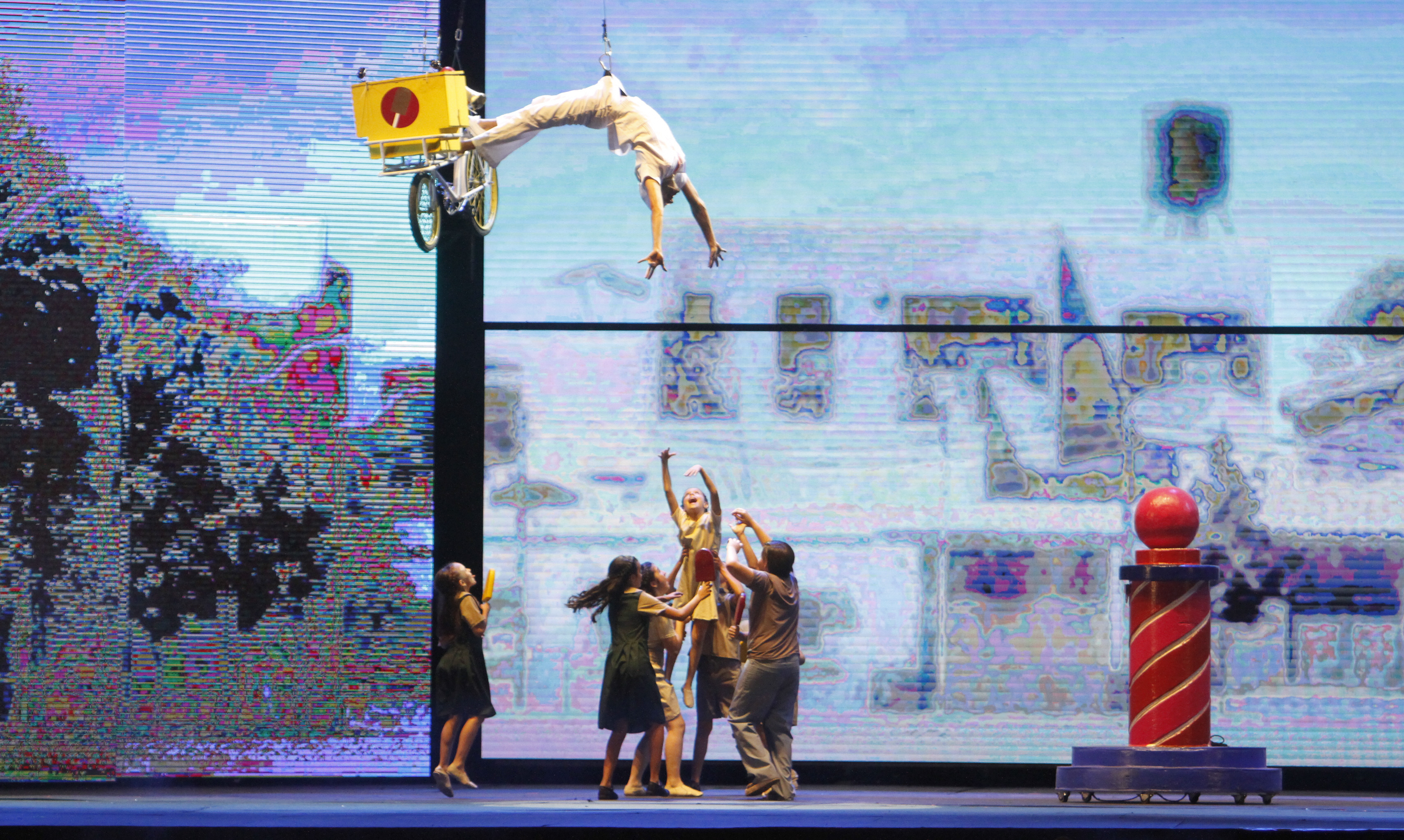 La historia incluyó muchos momentos mágicos, que hicieron que el público quedara sorprendido. Ciclistas que bailaron con sus bicicletas, escobas voladoras y una carretilla que hizo que los niños recorrieran el cielo sanjuanino con rapidez. Y como si eso fuera poco, las luces del espectáculo jugaron un papel fundamental en la historia y ayudaron para que como en un espiral del tiempo la gente se condujera a momentos mágicos. La obra apeló a los sentidos y el público hasta se mojó cuando llegó el turno de la chaya.