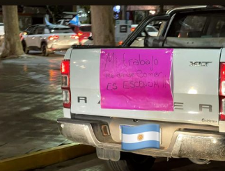 Con bocinazos, banderas argentinas y carteles sobre la necesidad de trabajar, la gente se reunió en la zona aledaña a la plaza 25 de Mayo y circuló en caravana.