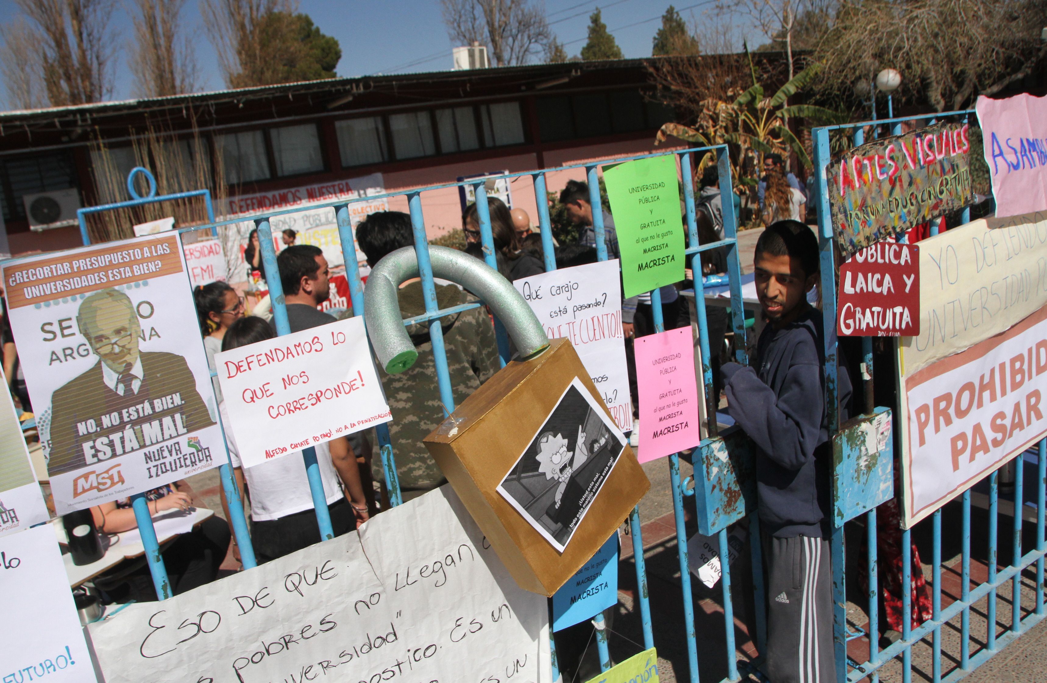 Al principio fueron los únicos protagonistas de la protesta, pero de a poco sumaron adhesión popular. Ayer, alumnos de la Universidad Nacional de San Juan tomaron la Facultad de Sociales y cerraron las puertas de ingreso en el marco de una protesta pacífica contra el ajuste presupuestario. La gente apoyó con bocinazos esta medida. Por la tarde, los estudiantes decidieron continuar con la toma del edificio al menos hasta hoy, mientras que el decano de esta facultad, Raúl García, dijo que seguirá dialogando con los chicos para que levanten esta medida.