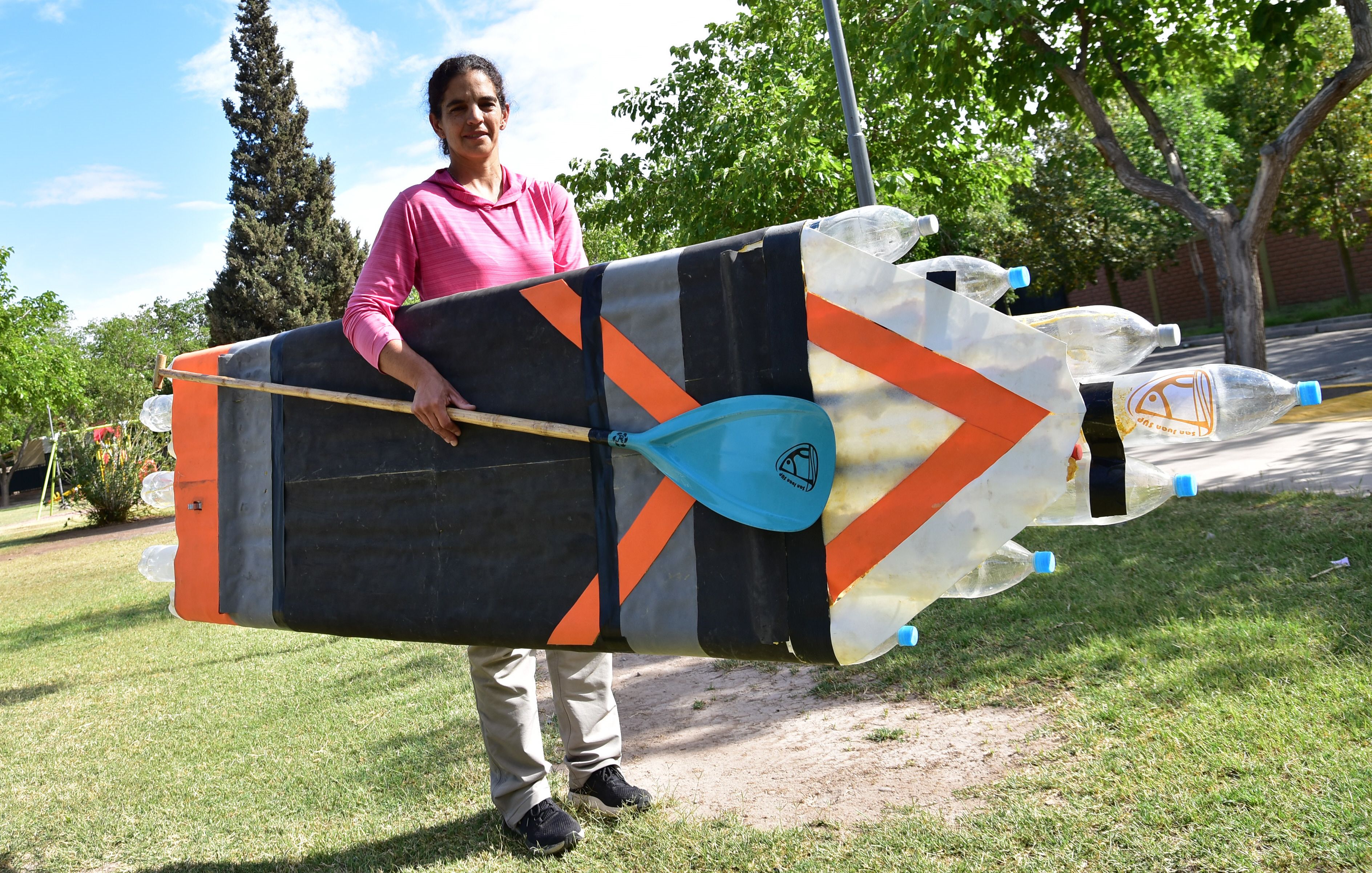Lilia Fernández es profesora de Educación Física y una de las precursoras del stand up paddle en San Juan, que es una modalidad del surfing en la que hay que pararse sobre una tabla y propulsarse con un remo. Un día vio una publicación de una familia brasileña que había creado una tabla con botellas plásticas y entonces se propuso hacer lo mismo acá. Más de un año tardó en desarrollar el proyecto, entre prueba y error, y después de horas y horas invertidas hoy está lista para presentarlo. Se trata de su Ecotabla, hecha con botellas, pegamento, tubos de plomería y cañas, que será testeada y exigida hoy desde las 10 en el dique Punta Negra (habrá pruebas en distintas distancias). Pretende ser una muestra de que todo puede reciclarse y que con ingenio y conciencia medioambiental hasta se puede navegar sobre el agua simplemente uniendo lo que para mucho no es más que basura.