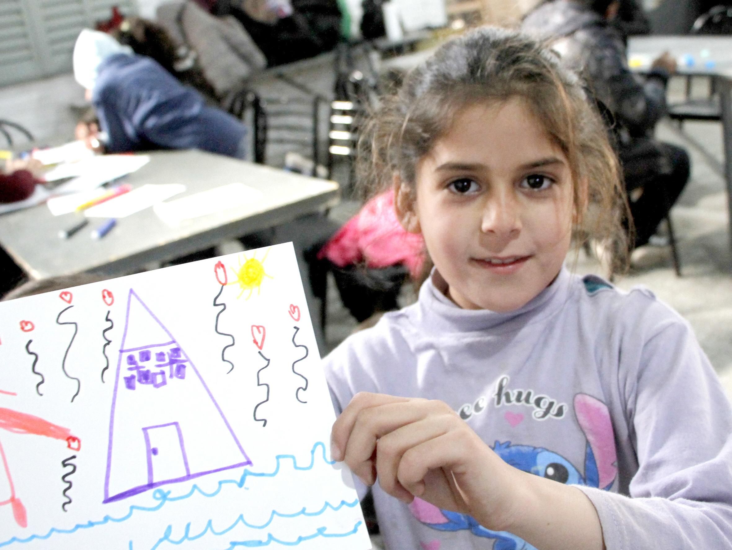 Luciana Reina fue una de las primeras nenas en llegar a la Unión Vecinal de La Rinconada y también en participar de las actividades recreativas. Sin dudarlo tomó una hoja en blanco y lápices de colores para dibujar la casa “que no se llueve”, donde ahora vivirá con su familia.