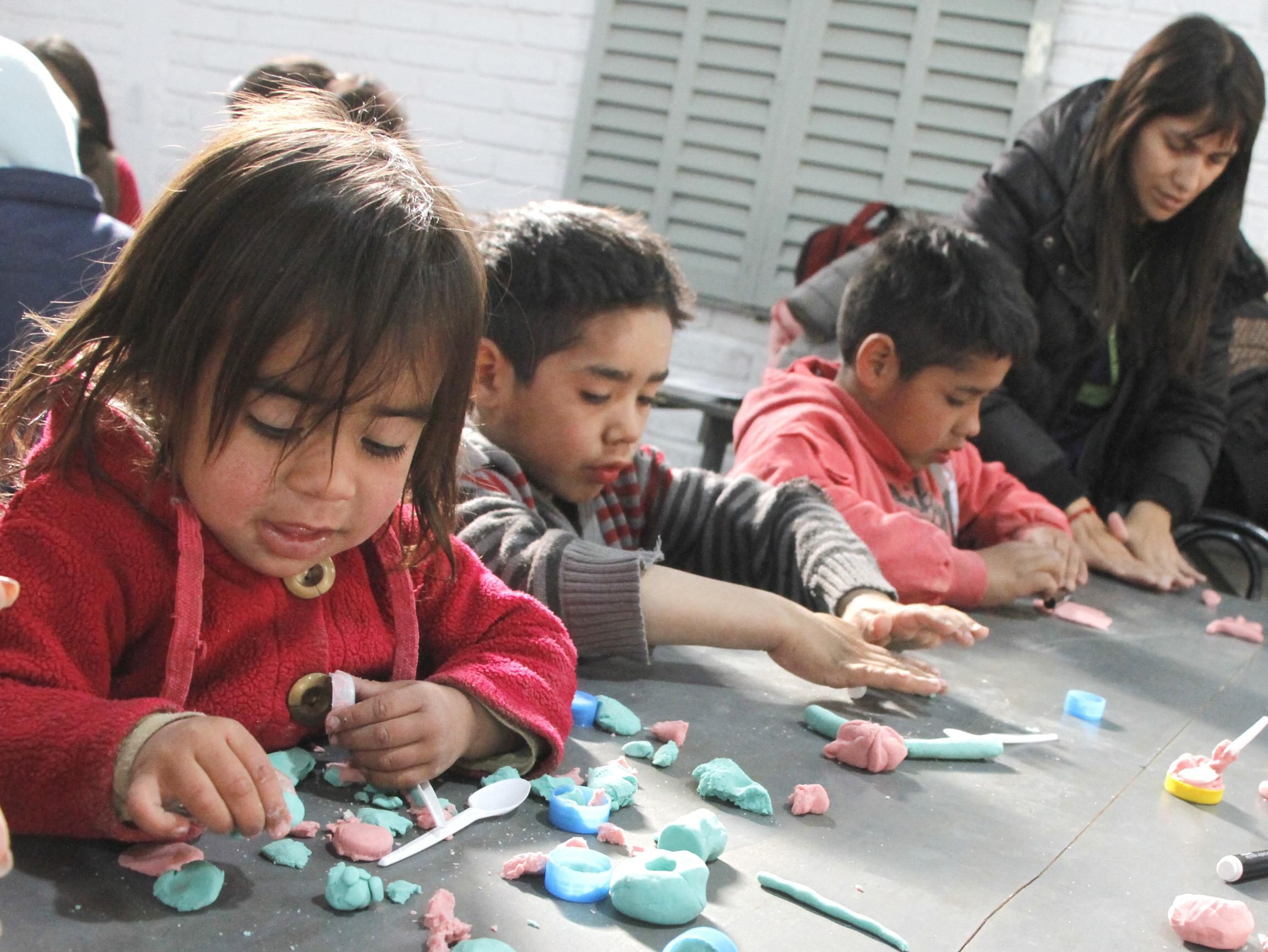 Nenas y varones dieron rienda suelta a su creatividad para hacer adornos con la masa que prepararon.