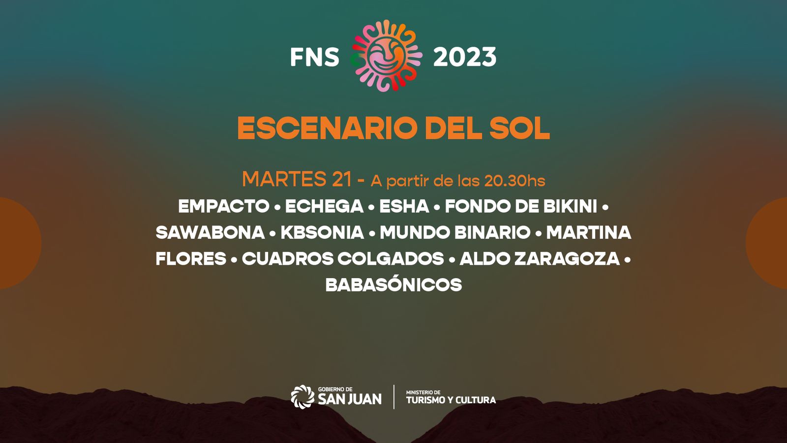 La cuenta regresiva para el comienzo de una nueva edición de la Fiesta Nacional del Sol ingresa en la recta final. Luego de la pausa obligada de dos años por los efectos de la pandemia, nuevamente el predio Costanera volverá a ser la sede y para esta ocasión habrá 4 escenarios donde continuamente se estarán presentando artistas musicales, de diferentes ámbitos y latitudes. A continuación un repaso día por día en cada escenario.