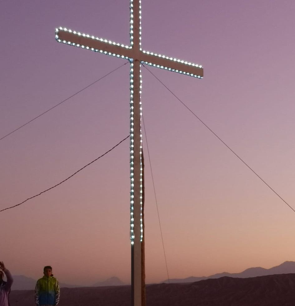 La nueva cruz en la cima del cerro se iluminó rememorando aquellas épocas en que todo el pueblo se congregaba a su alrededor para celebrar el Vía Crucis cada Semana Santa. "Me daba mucha pena ver el lugar. Junto a Sergio Castañeda y Jésica Contreras decidimos trabajar para recuperarlo. Lo primero que conseguimos fue la mano de obra, tras hablar con el intendente Jorge Castañeda. Luego, hubo pequeños y grandes aportes de todos los vecinos, y sin eso jamás hubiéramos logrado nuestro objetivo", sostuvo Leticia.