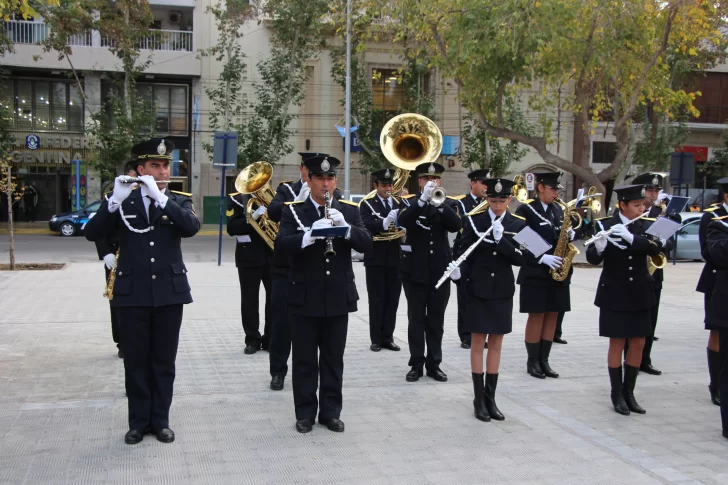El intendente Franco Aranda y el presidente del Concejo Deliberante, Juan Pablo Dara, encabezaron el tradicional izamiento de la bandera en el corazón de la Plaza 25 de Mayo.
