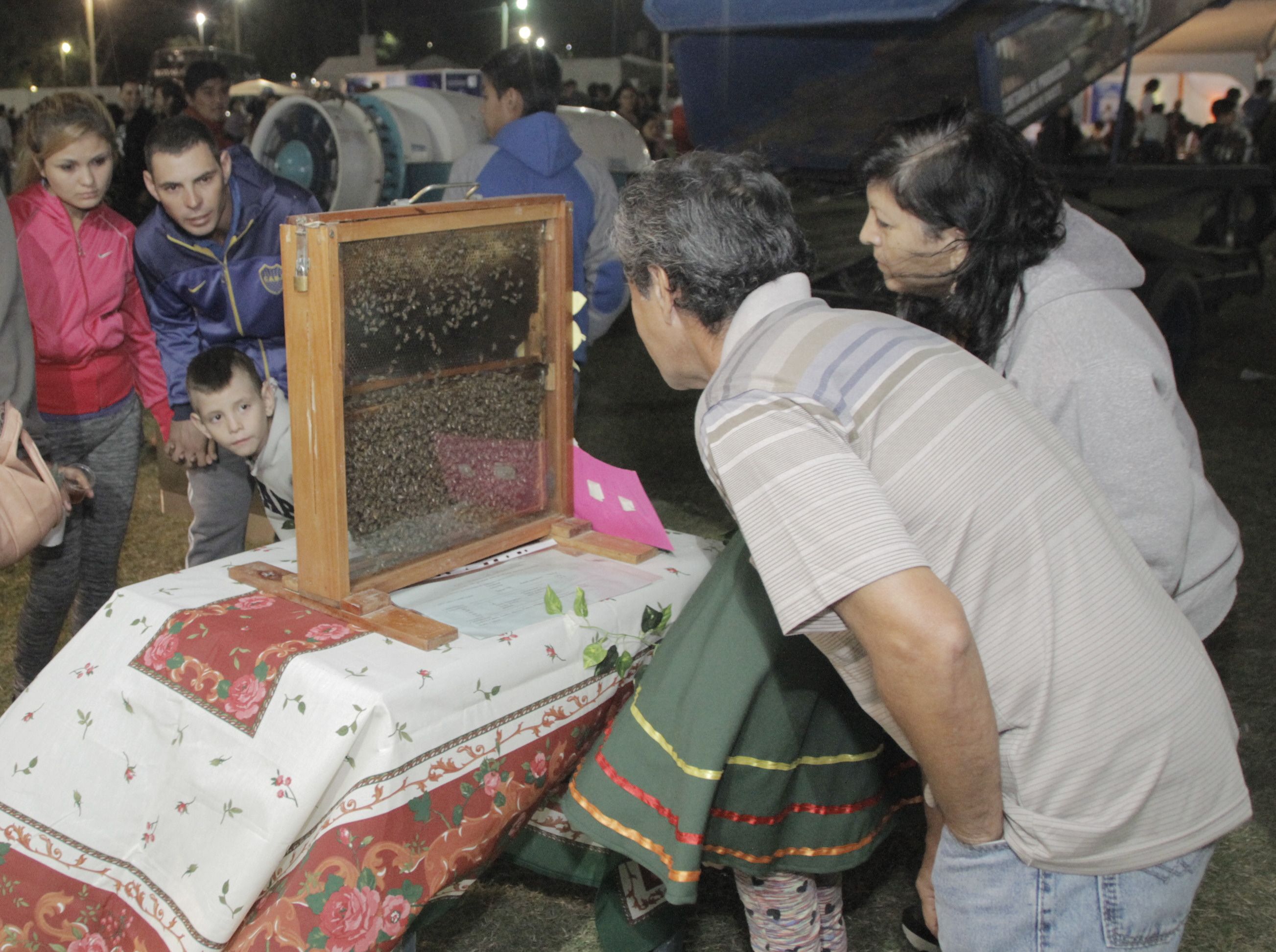 El emprendimiento apícola Valles de Beraca, de Caucete, se volvió una de las paradas fijas de la feria. Con un panal de abejas llamaron la atención y explicaron cómo se produce la miel. En el stand estuvo Carlos Abraham y sus hijos, ya que el emprendimiento es familiar.