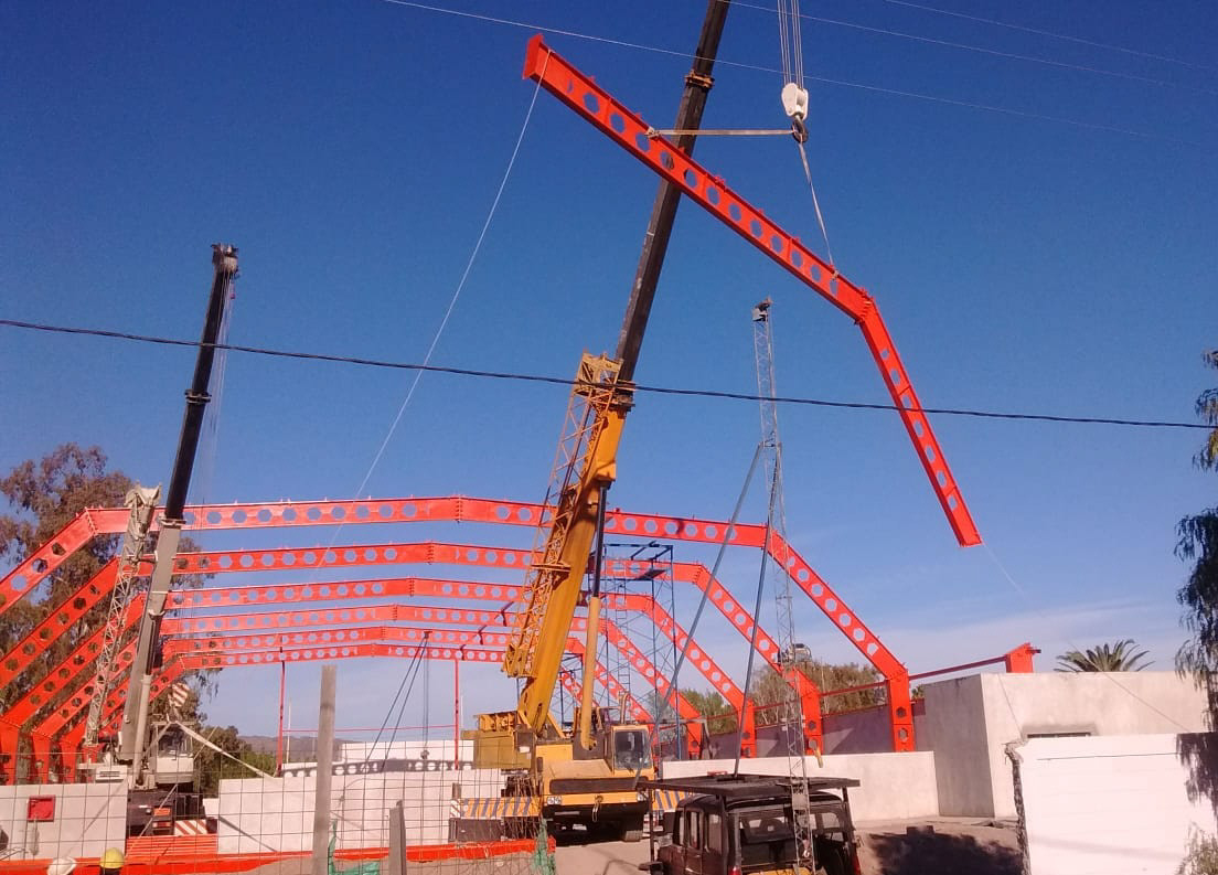 La tranquilidad de La Puntilla, la localidad con más habitantes de San Martín, se alteró en estos últimos días por una invasión de grúas y máquinas pesadas que comenzaron a elevar toneladas de hierro. Es que ya se comenzó a colocar el techo del sector cubierto que tendrá el estadio que se está construyendo en ese departamento. La obra tiene un avance del 59%. Se trata de un mega polideportivo que tendrá hasta una cabina para la transmisión periodística.
