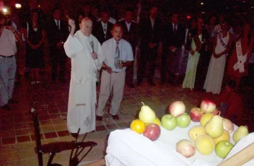 Este golpe y la bendición de los frutos, en el atrio de la parroquia Cristo Rey, son un ritual que se realiza en cada comienzo del festejo.