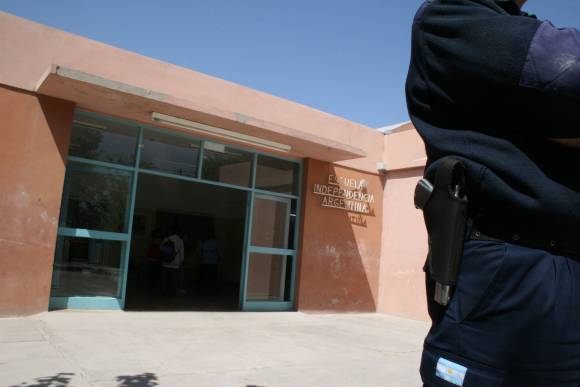 Ayer sólo quedaban algunos vidrios rotos esparcidos por calle Lavalle y Maestro Sarmiento, en el barrio Fortabat, Rivadavia. Eran restos de evidencia de lo que los vecinos y padres aseguraban que había ocurrido el martes por la noche en las puertas de la escuela Independencia Argentina. Decían que el hijo (de 22 años) de la casera de la escuela, luego de romper vidrios de algunos vehículos estacionados afuera, amenazó a toda la comunidad educativa al pasearse con un sable por el interior del edificio. El muchacho fue detenido por la Policía, pero los padres, temiendo por la seguridad de sus hijos, ayer decidieron tomar la escuela e impedir que tuvieran clases hasta que saquen a esa familia del lugar.