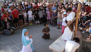 San Juan, 29 de marzo.- Minutos antes de las 15,30 una multitud de niños acompañados por sus padres se dieron cita en la Iglesia Catedral, San Juan Bautista. Es que los grupos de Acción Católica y de Catequesis de la Catedral organizaron una vez más, el Vía Crucis Viviente para que los más pequeños conmemoren también la Pasión de Cristo.