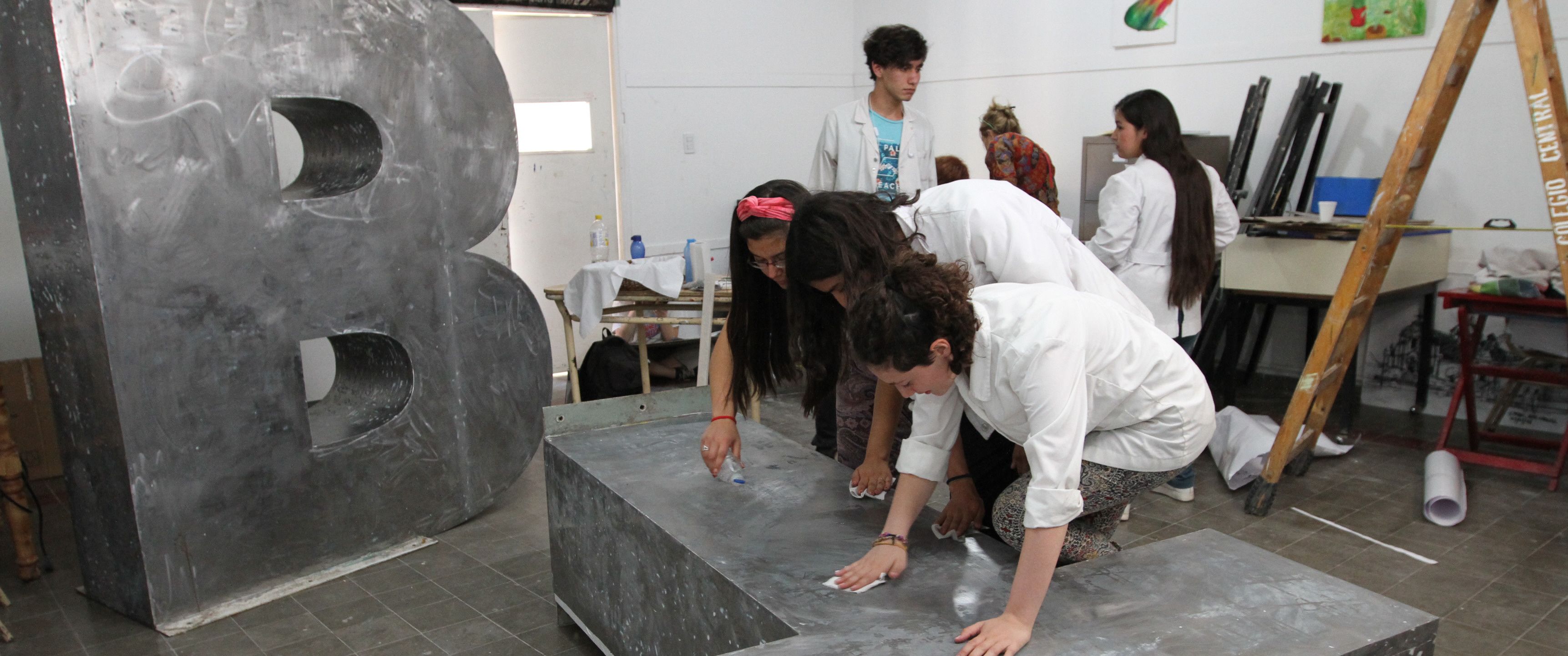 En un paso final, los alumnos laquearon las letras con una pintura especial que refleja una luz por las noches. Las letras volverán hoy al patio central del teatro para que la gente vuelva a usarlas como escenario para sacarse fotos.