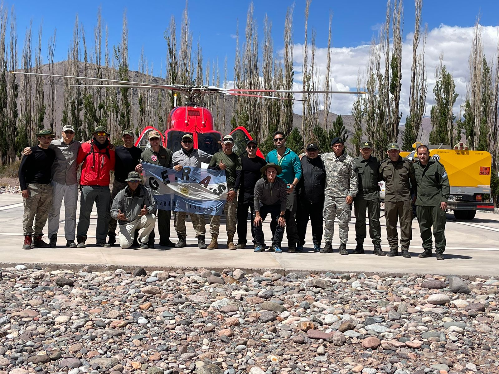 El grupo que realizó la expedición estuvo integrada por miembros de Ministerio Público Fiscal, Iván Grass y los ayudantes fiscales Ignacio Domínguez y Cristian Gerarduzzi, además del Grupo GERAS a cargo de comisario Diego Morales. Una vez reunidos iniciado el ascenso al Cerro Mercedario Cara Sur, comenzaron con el operativo de búsqueda, rescate, extracción y traslado del cuerpo hallado sin vida en dicho lugar. También arribó el helicóptero provincial piloteado por Pablo Slovick.