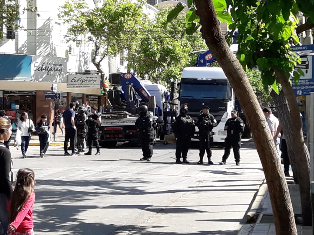 Policías armados, patrulleros, camiones de gran porte  y calles cortadas.  Cualquiera que se haya cruzado con el operativo de traslado de las bóvedas de la sucursal que el Banco Galicia tenía en Rivadavia y General Acha no quedó indiferente ante tremendo despliegue.