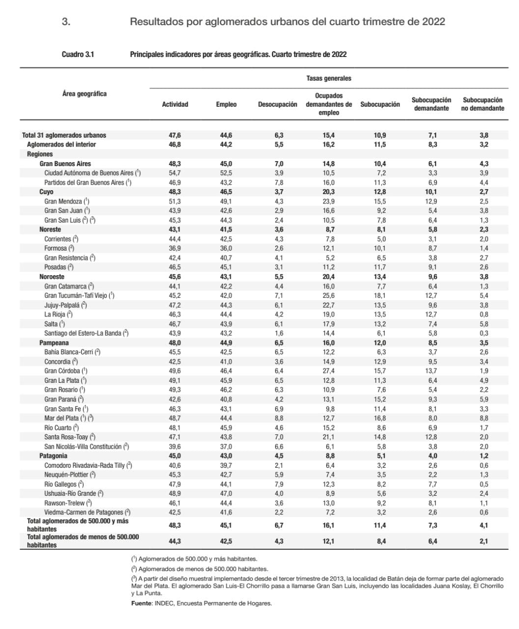 Además el relevamiento indicó una importante baja interanual, pasando del 5,2 % en el último trimestre de 2021 al 2,9 % del mismo periodo de 2022.