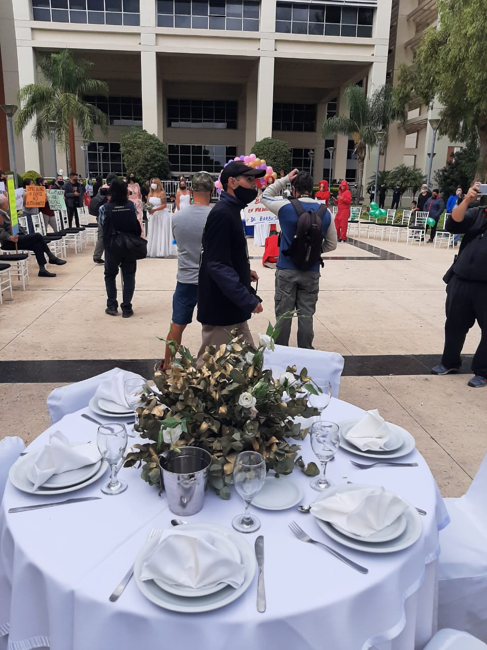 "Se nos ocurrió hacer esto porque es una forma artística y pacífica de reclamar por nuestro trabajo y así también demostrar que se pueden hacer eventos privados cumpliendo con todos los protocolos. Somos más de 250.000 personas las que directa o indirectamente trabajamos de los eventos privados y llevamos 365 días sin trabajar teniendo todos los protocolos listos para ser aprobados", indicó Valeria Rodríguez, organizadora de eventos privados en la provincia.