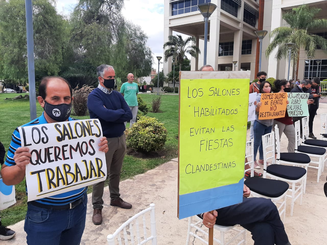 Los organizadores de eventos privados conjuntamente con sonidistas, iluminadores, trabajadores de catering, DJs y decoradores realizaron durante la mañana de hoy un evento al aire libre en la puerta del centro cívico para reclamar la habilitación de los eventos privados luego de 365 días sin poder trabajar.