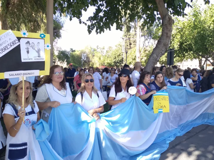 Con carteles, banderas y silbatos los maestros pidieron un aumento del 100 por ciento en una sola vez y clausula gatillo.