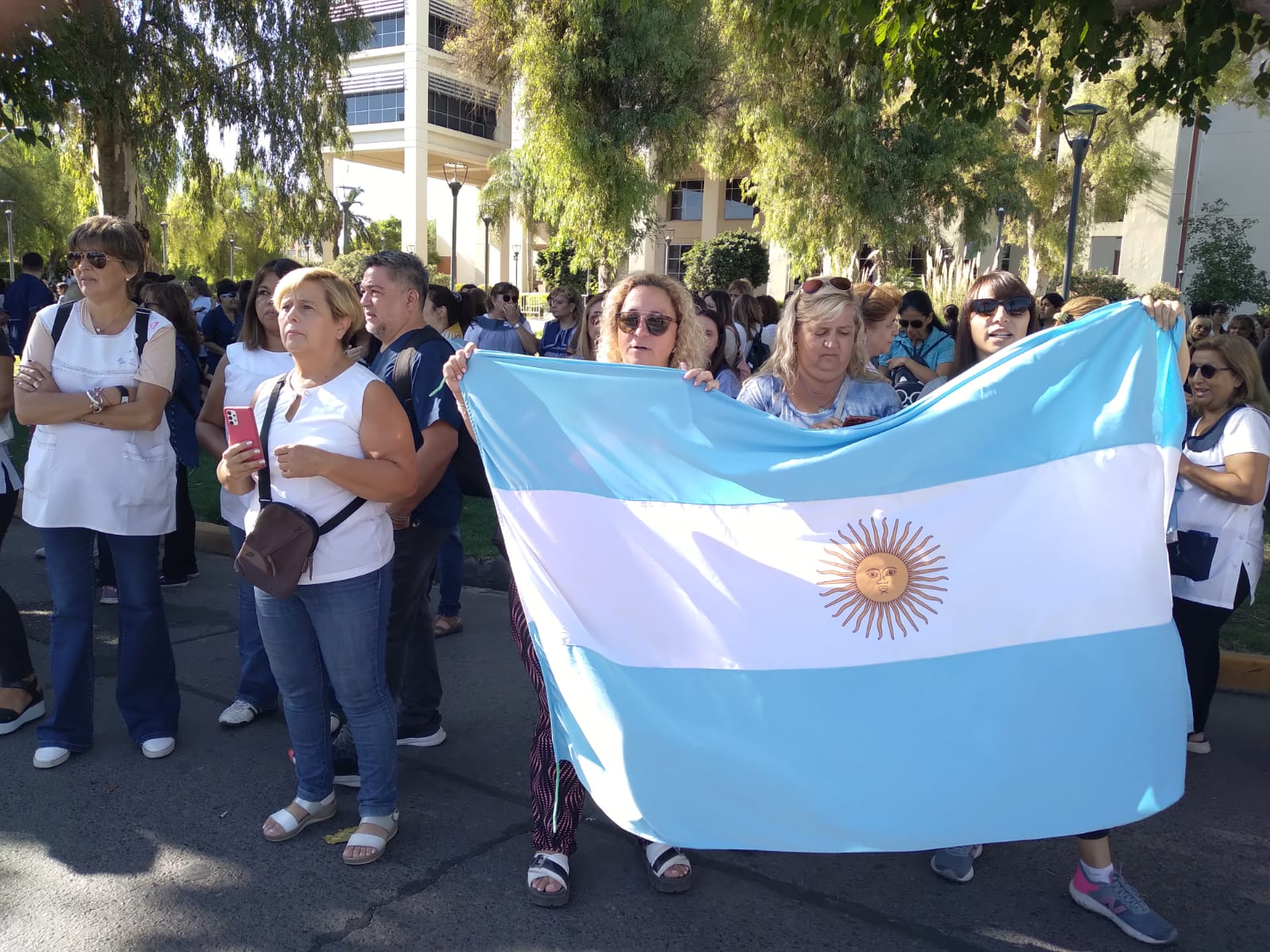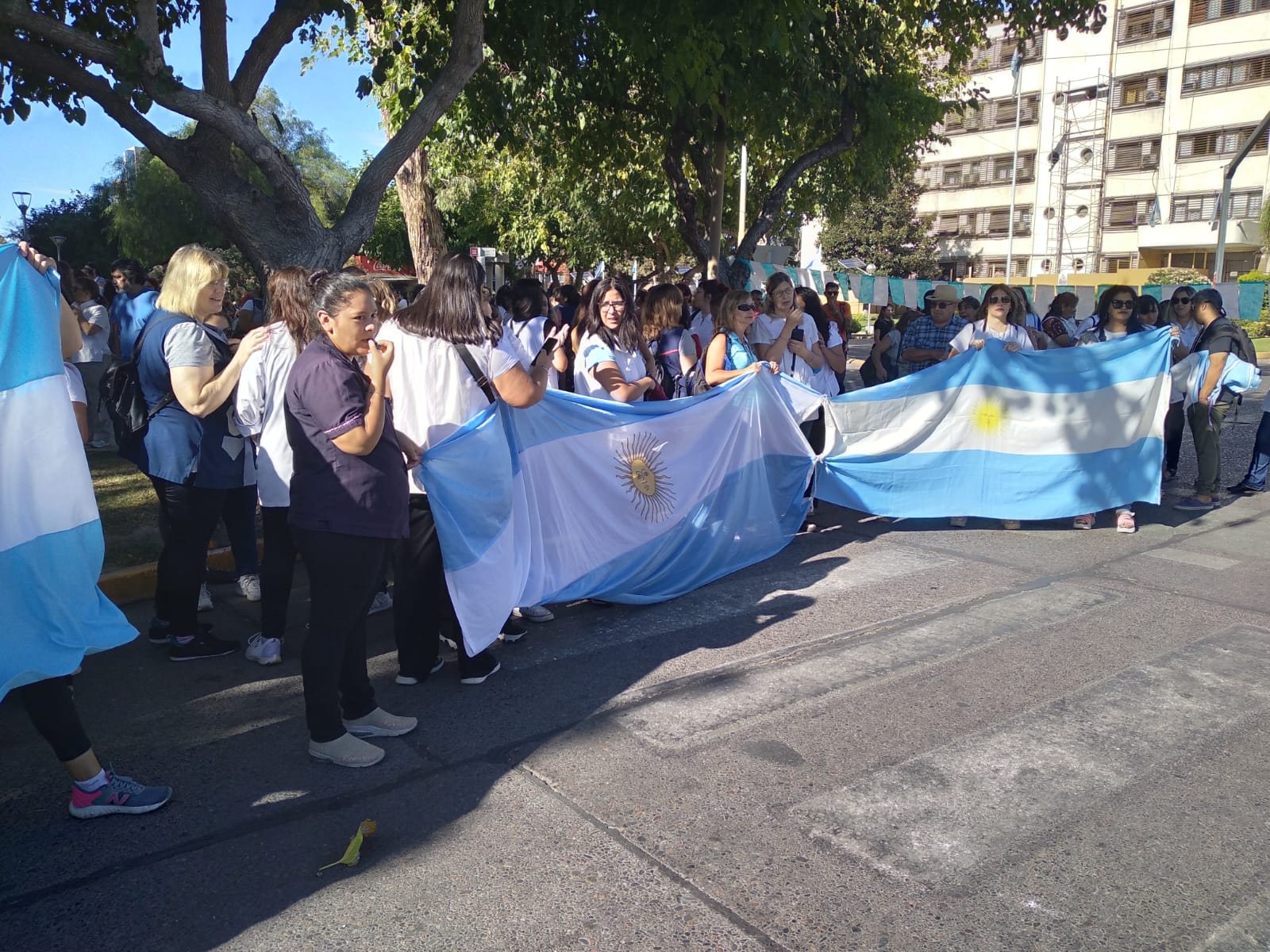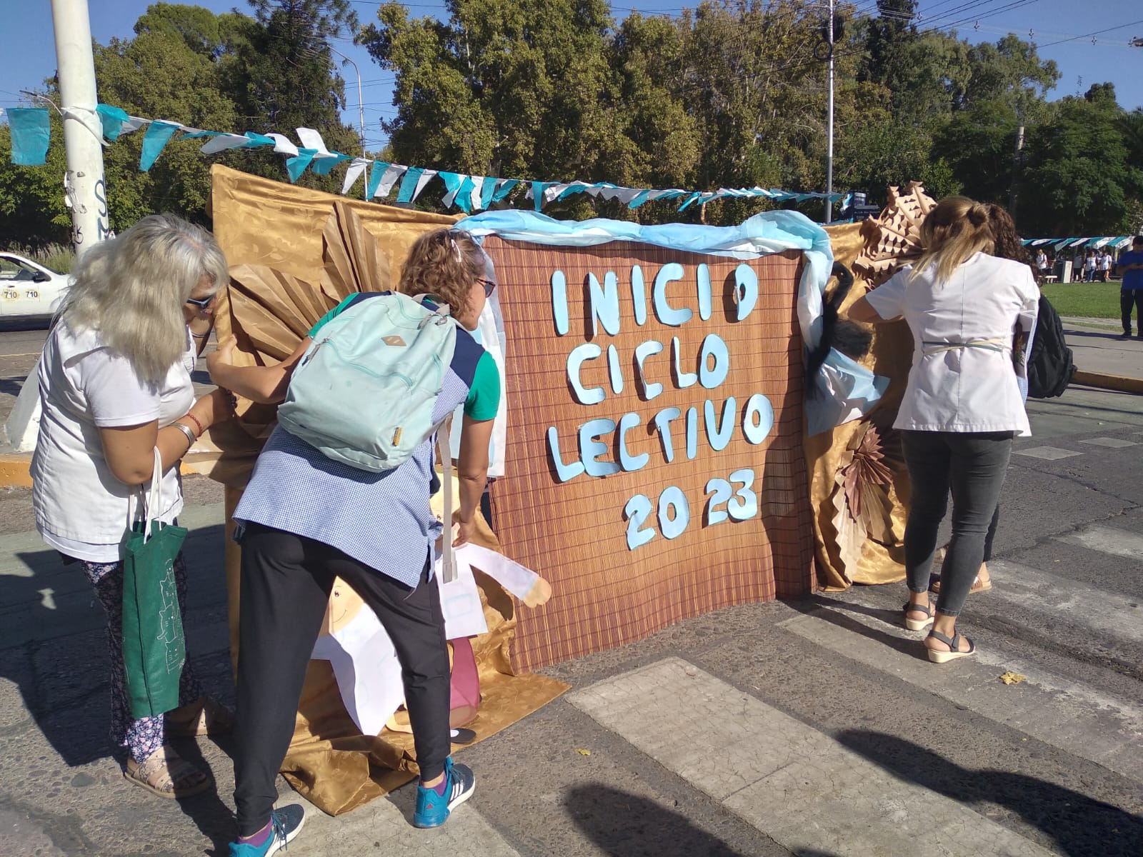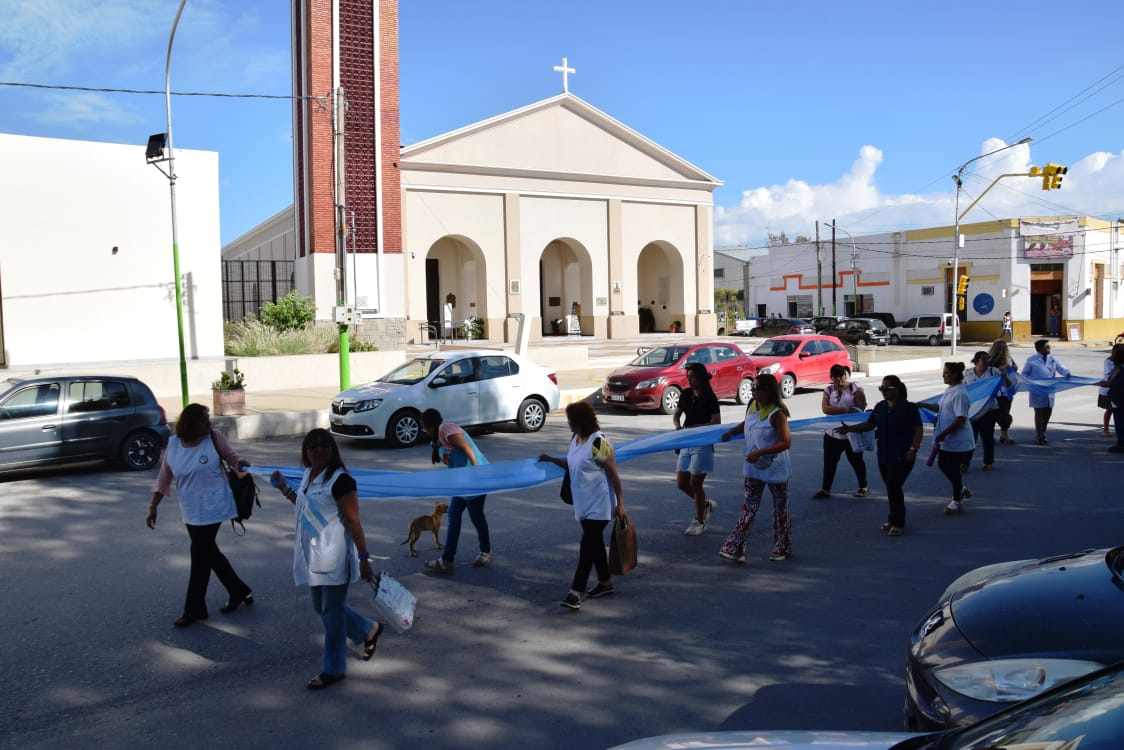 Los docentes hicieron un acto de inicio del ciclo lectivo simbólico que incluyó la entonación del Himno Nacional Argentino y del dedicado a Sarmiento. La Bandera de ceremonias fue portada por niños.