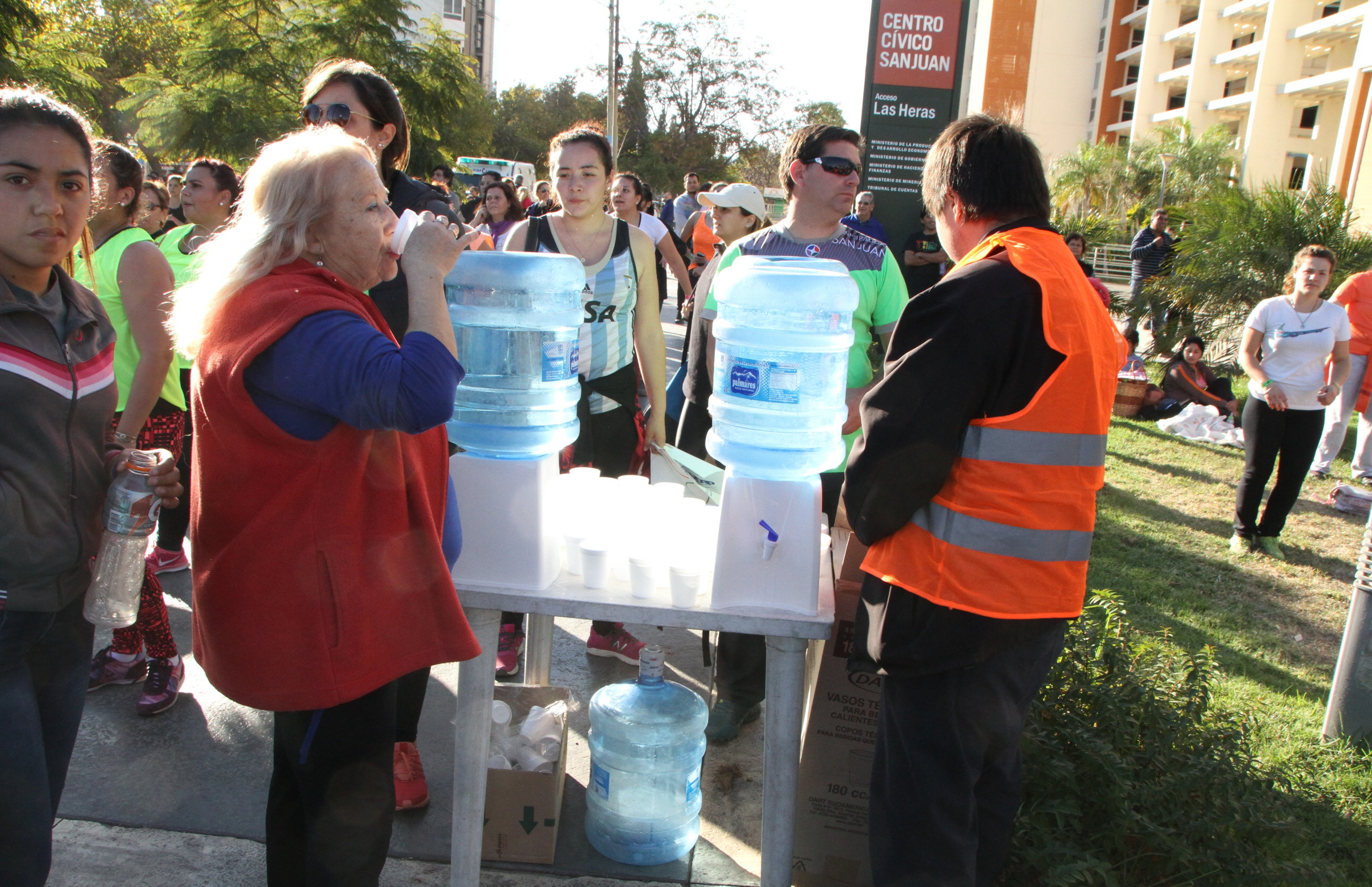 Puestos de hidratación, baños químicos y una carpa con un equipo de 8 personas de la Municipalidad para atender casos de esguinces, baja de presión y otros imprevistos de salud, estuvieron al servicio de la multitud. Además, se repartieron 1.500 bolsas con obsequios: pasas, botella para hidratarse y folletería sobre donación de órganos.