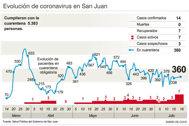 Desde Salud Pública confirmaron ayer que a todos los contactos estrechos del caso 3 de coronavirus en San Juan, es decir el camionero a quien le habían vuelto a detectar el virus un mes y medio después de haber recibido el alta de Covid-19, la prueba por hisopado les dio negativo. Esto lleva directamente a una conclusión por parte de los especialistas, según había anticipado este diario: el transportista no se contagió de nuevo, sino que en realidad tuvo una "reactivación" del virus en su organismo, pero tan leve que no adquirió la capacidad de contagio, además de permanecer asintomático durante todo este tiempo.