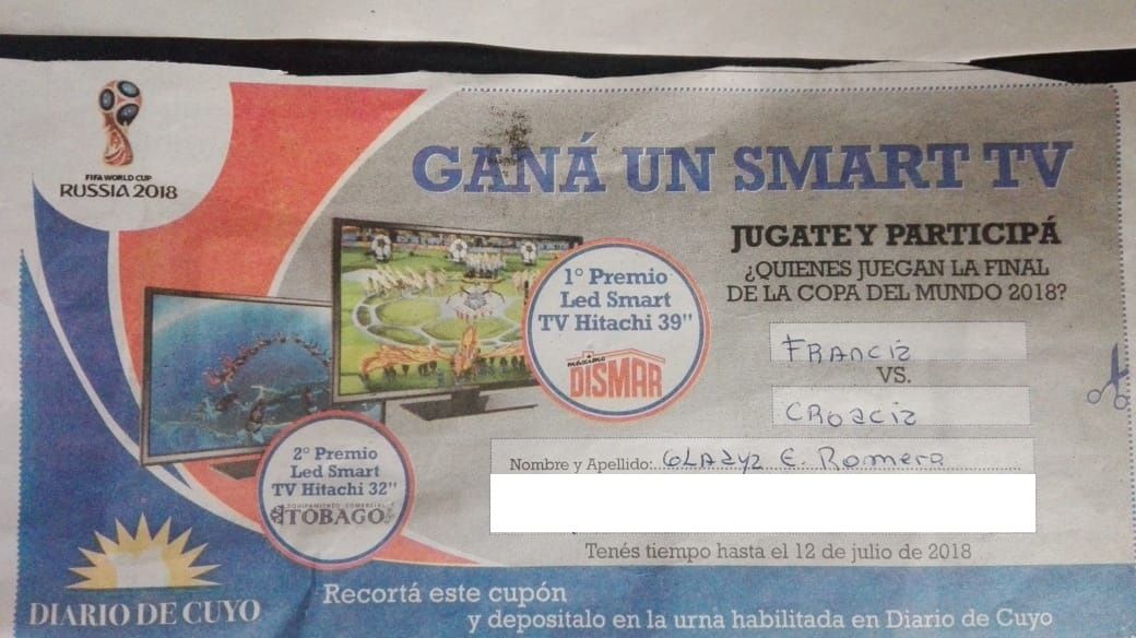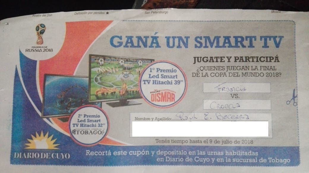 Desde que comenzó el Mundial de Rusia, DIARIO DE CUYO lanzó un concurso para que dos lectores puedan disfrutar de la gran final en nuevos televisores.