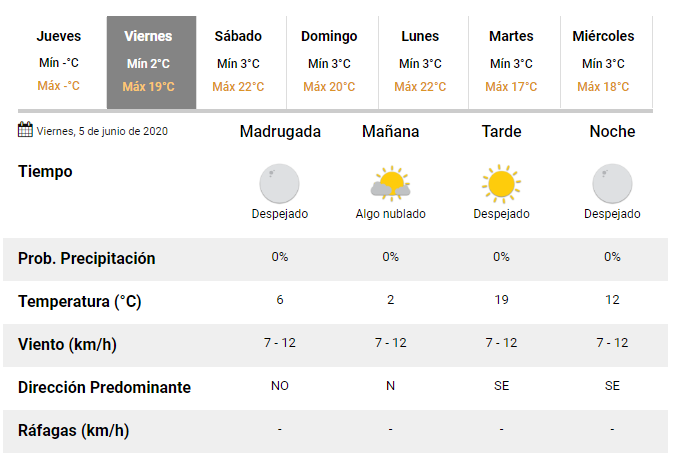 Para el fin de semana, se espera que la máxima continúe en ascenso y oscile entre los 20 y 22 grados mientras que para el inicio de la próxima semana, la máxima variará entre los 17 y 22 grados.