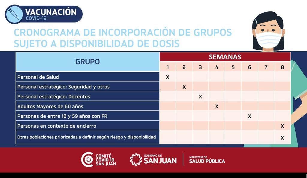 Según lo informado, serán 255.804 los sanjuaninos que recibirán la vacuna aunque se realizará en tandas y de acuerdo a las condiciones de riesgo.