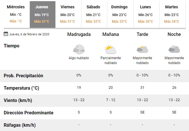 El viernes, la máxima escalará hasta los 31°C y se espera que el fin de semana se presente con másximas de 33 grados.