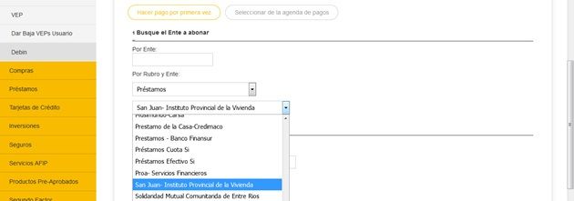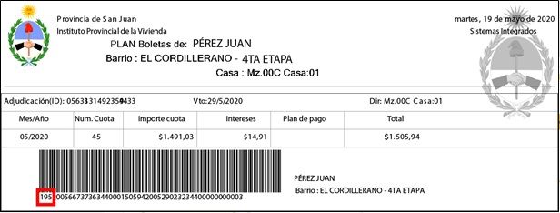 -Si el código de barras de tu boleta comienza con 192, en el menú desplegable de Ente seleccióna la opción San Juan Instituto Provincial de la Vivienda: