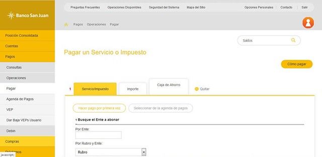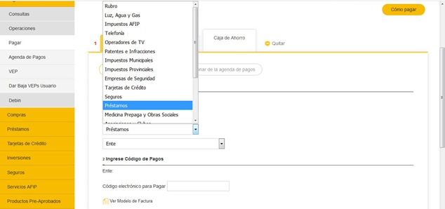 En el menú desplegable de tu izquierda seleccioná Pagos, luego Operaciones y por último la opción Pagar