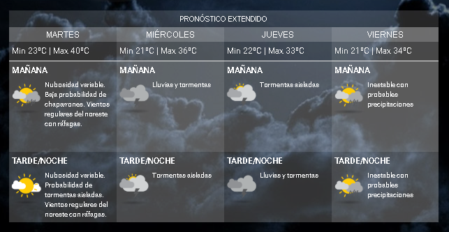 Para el miércoles, la máxima alcanzará los 36ºC mientras que el jueves y viernes se espera que oscile entre los 33 y 34 grados.