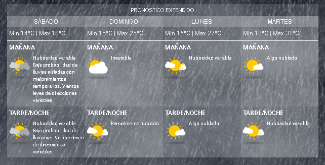 Conocé el pronóstico del tiempo para este sábado