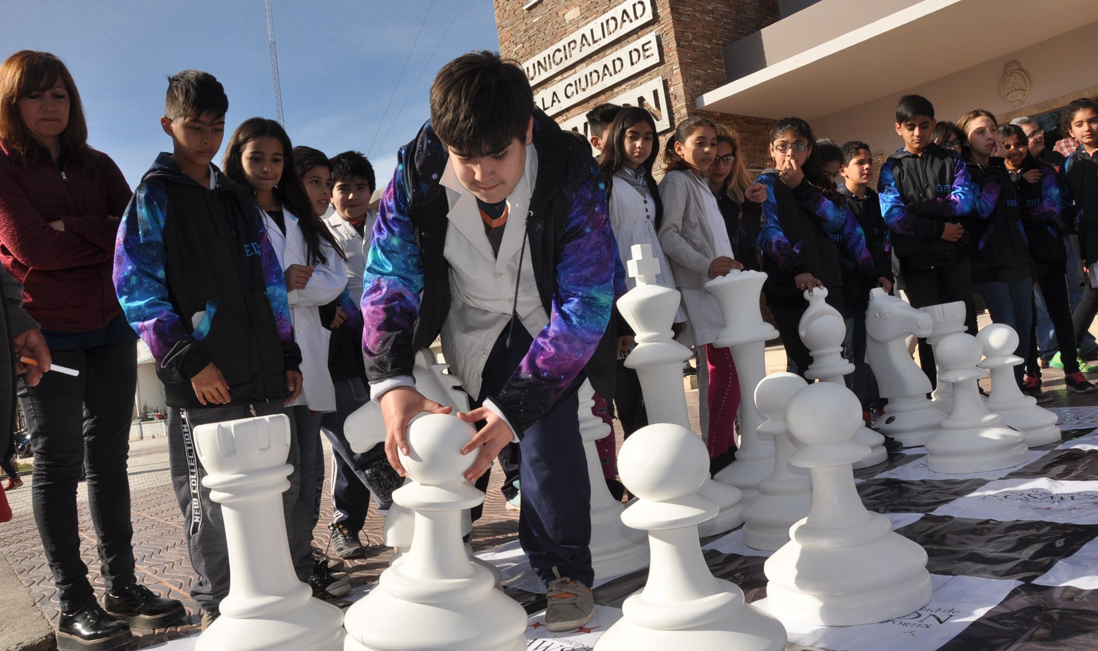 En Rawson, el ajedrez es una disciplina que cada vez pega más fuerte. En cada escuelita, hay unos 50 chicos por clase que van a aprender todas las técnicas y estrategias. A esto se suma que dos profesores recorren las escuelas una vez por semana para dar una clase introductoria y sembrar la inquietud entre los alumnos. Van una vez por semana a la institución que lo requiera y pasan cuatro horas enseñando los aspectos básicos del ajedrez, sobre todo cómo hay que mover las piezas. Los chicos que se enganchan, suelen concurrir luego a las escuelitas municipales. Ayer, lo que hicieron es colocar el tablero en el corazón de Villa Krause para que la gente pudiera ver bien de qué se trata el juego. Entusiasmados, alumnos de las escuelas que hay en la zona se arrimaron para estrenar el imponente juego.