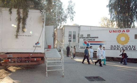 En el Hospital Rawson colocaron ayer dos trailers en los que atenderán a los pacientes que tengan síntomas gripales. En uno asistirán a los pacientes del Rawson y en el otro a los del Hospital de Niños Juan Carlos Navarro. Ambos están ubicados en el patio del Rawson, al lado del portón de calle Santa Fe. Lo que se pretende es aislar a los pacientes que padecen gripe para evitar contagios. En el lugar se montó también una carpa que será la sala de espera. El personal que se encargará de atender a los pacientes, 10 médicos y 5 enfermeros, ha sido contratado y capacitado para tal fin. Trabajarán en turnos y atenderán desde las 7 hasta las 20.
