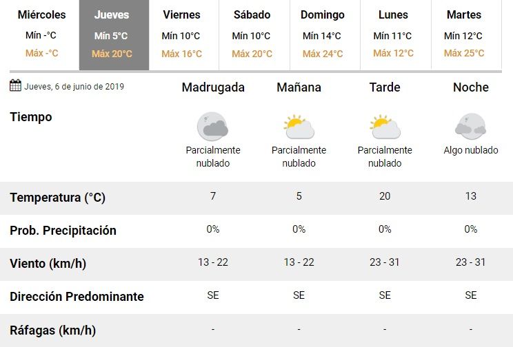De esta manera, se espera que la máxima ascienda hasta los 20°C mientras que la mínima caerá hasta los 5°C. La jornada se presentará con cielo parcialmente nublado.