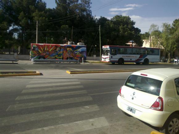 Pero como el aspecto de la vieja unidad era poco estético, las empresas que mantienen este colectivo decidieron pintarlo con un diseño muy particular, pleno de colores, que precisamente es similar al que tienen las nuevas garitas que colocó el municipio de Rivadavia.