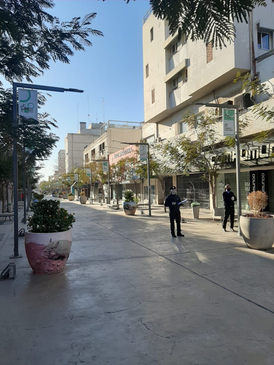Mientras tanto, el acceso a la zona de Peatonal está completamente restringido. A su alrededor, personal limpia las calles, desinfecta y organiza operativos.